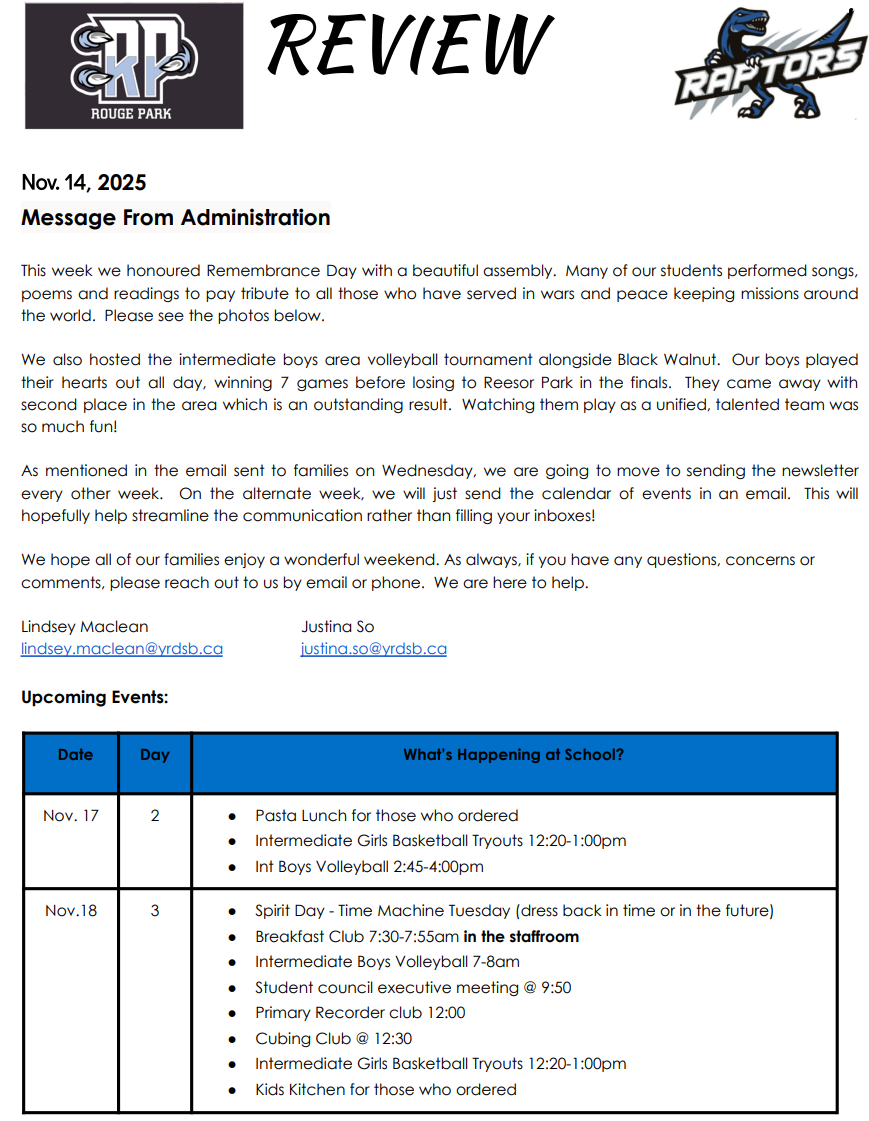 Good morning RPPS families, This was a short week at RPPS so we are not sending a full newsletter. Please see below for a calendar of events and a few important/timely notices about things happening in our school. Please remember that Friday and Monday are both…